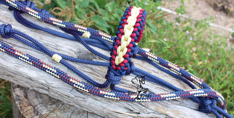 Our rope halters are 6mm double braid equestrian rope which is non stretch, rot, mould, fade and mildew resistant, low abrasive and washable. They are made using the correct fiador knot which is hand stitched to prevent them coming undone.