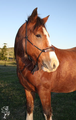 The leather noseband is handmade by us using only the best Quality leather. No cheap Indian leather here. Hand stamped, painted and sealed to protect the leather from the weather.
