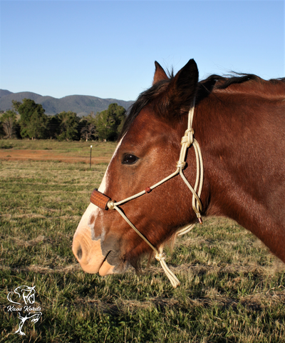 Our rope halters are 6mm double braid equestrian rope which is non stretch, rot, mould, fade and mildew resistant, low abrasive and washable.