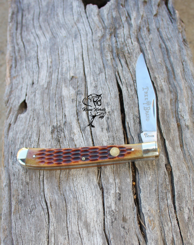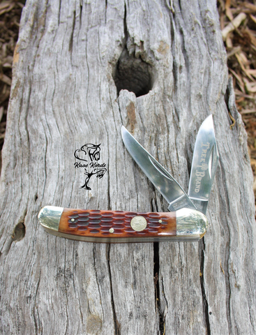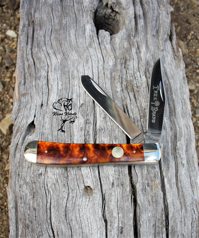 3 7/8″ closed. Stainless clip, spey and sheepsfoot blades.